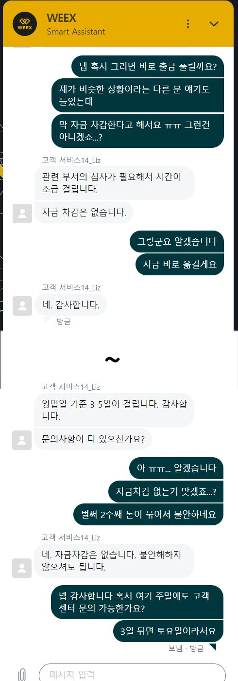 자금 차감 없다면서 대체 왜 거짓말을 한건가요? 이런 식으로 사람 속여서 돈 가져가는게 weex의 수익모델인가요?